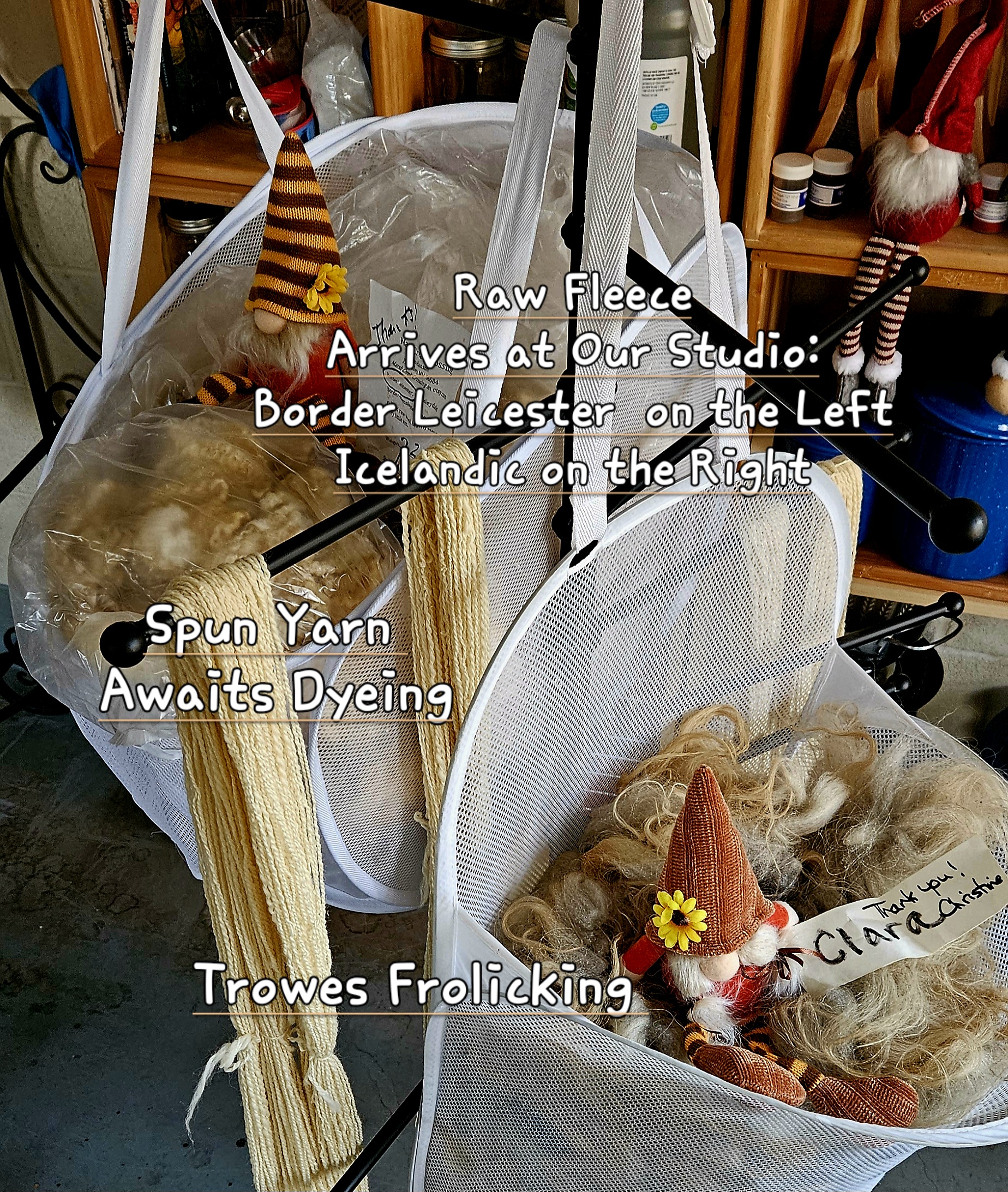 - Dyeing. fleece comes in many colors and shades other than white! Sometimes we leave it the natural color. If the wool is white, or a light shae of gray or brown, we might due the yarn before using it.