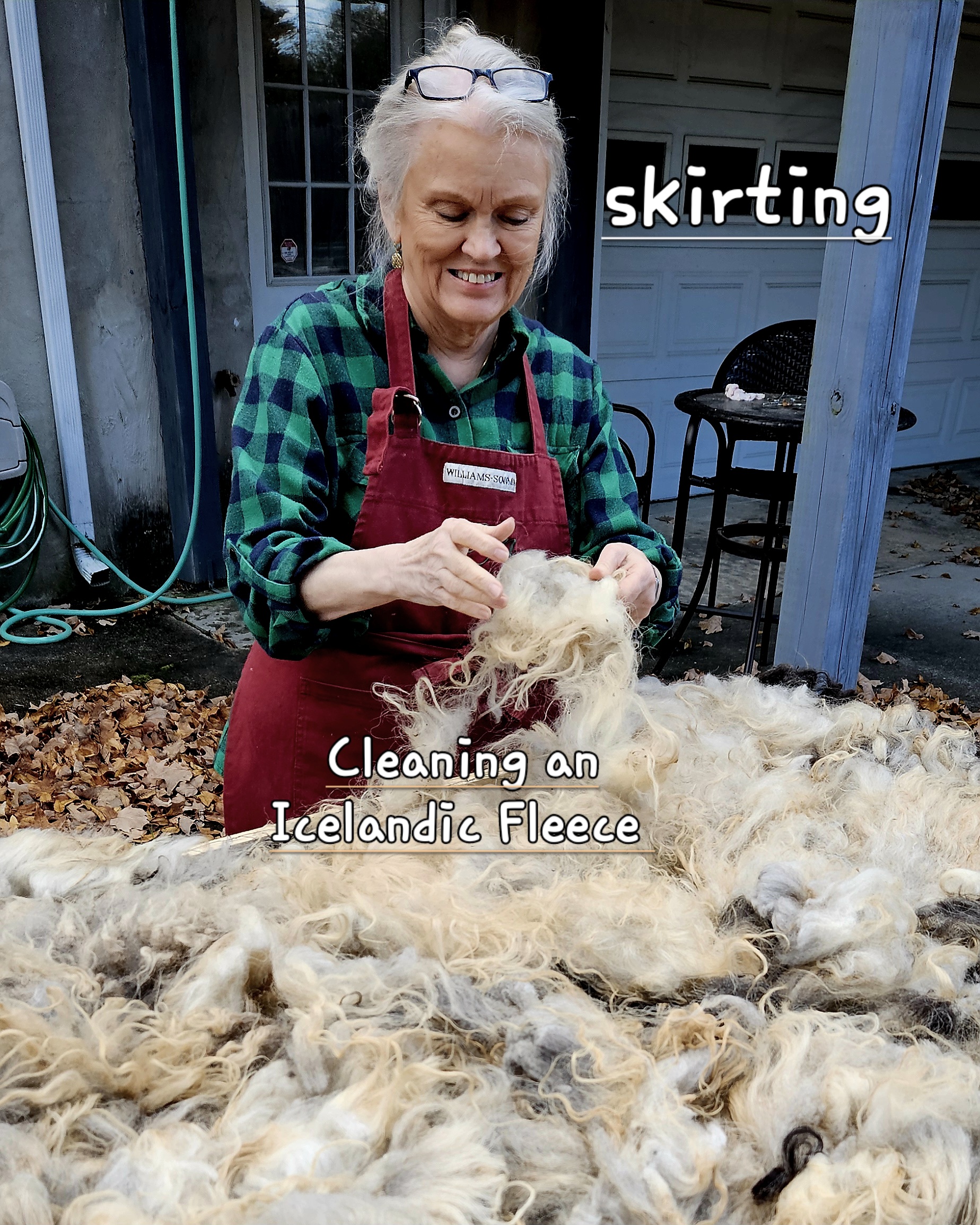 - Skirting is the first cleaning of the fleece, of dirt, vegetable matter (VM), and sheep poo. Our supplier does most of this, but we do a second skirting on our homemade skirting table.